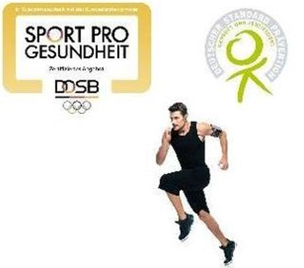 Zertifiziertes Angebot, ausgezeichnet mit den Siegeln „Sport Pro Gesundheit“ des DOSB und „Deutscher Standard Prävention“ der Kooperationsgemeinschaft der gesetzlichen Krankenkassen, nach § 20 SGB V.